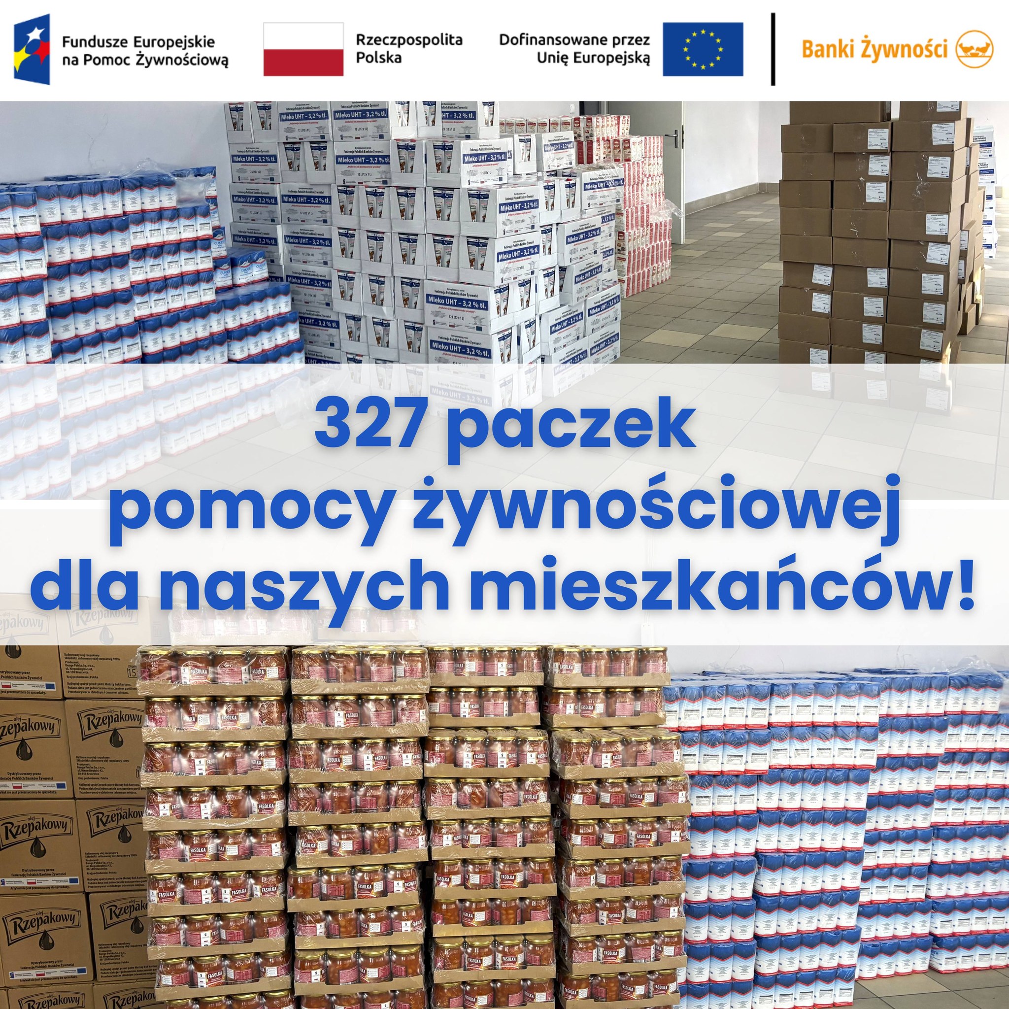 Podsumowanie dystrybucji żywności: 327 paczek dla mieszkańców